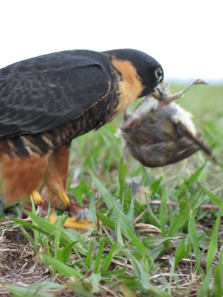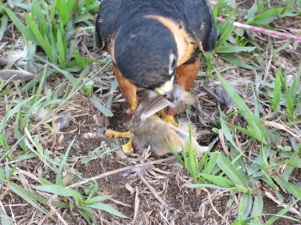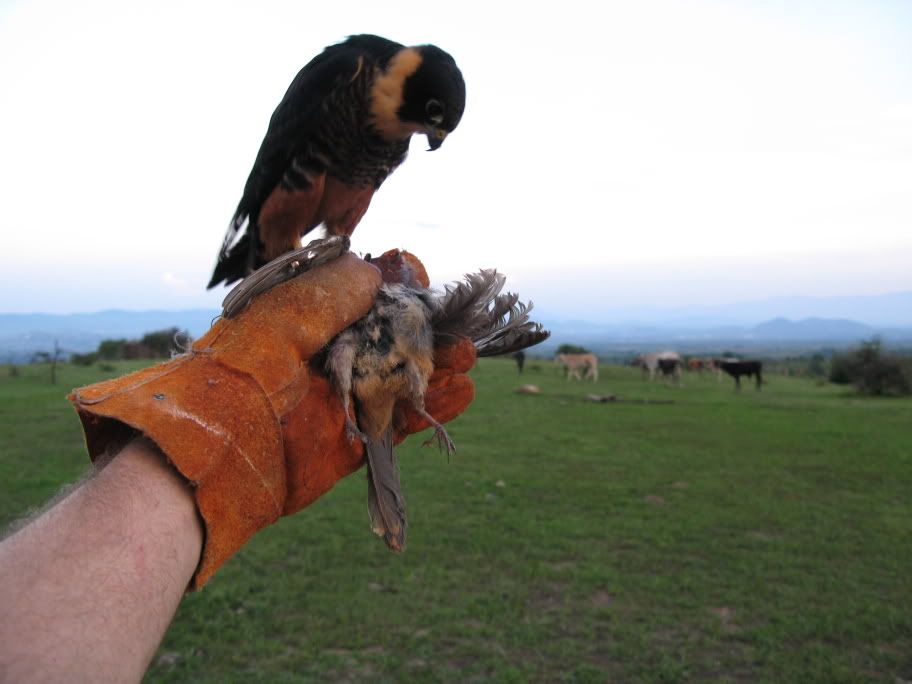 Hi all, thanks for your comments. The male bat falcon hunts at 113 grms. Yesterday he caught a cowbird. I read the links about bat f. biology and certainly sometimes they fly at dusk or dawn, as many other raptors like merlins, peregrines, etc, but the BF is definietly NOT a nocturnal species, it is CREPUSCULAR, since it does NOT fly or hunt at night.