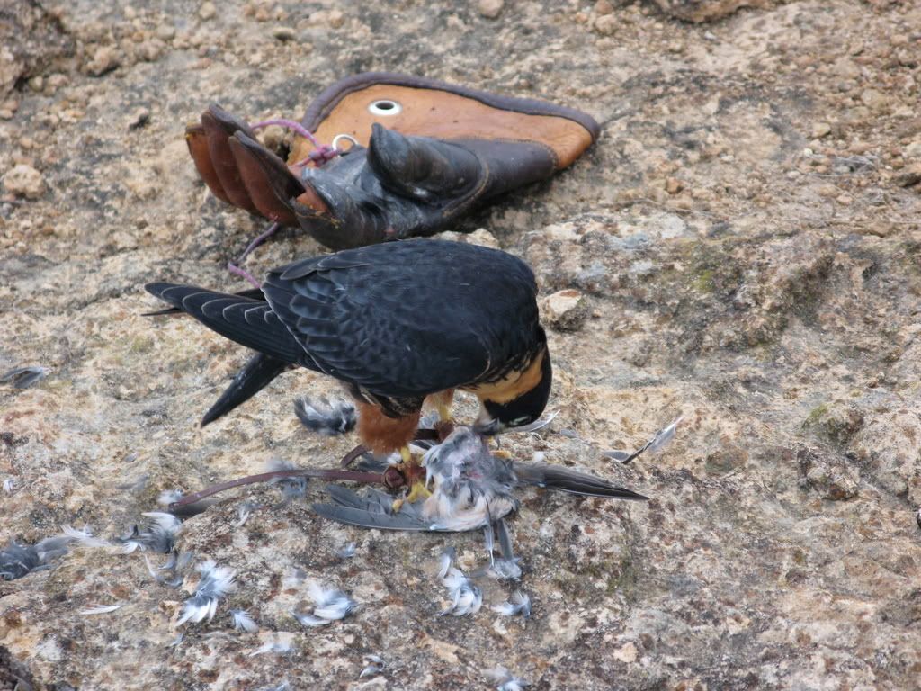 It was mid-July, I had the little Bat-girl out in the SRBPNA one morning. She went up with a little group of swallows, looked just like them, just bigger. It was her fourth time in the air, tame hacking, and she was staying right with them. Once they were all about 100 feet up, a fresh little passage Prairie Tiercel, just out of the canyon, zipped in and bound to the BF, which did see him coming and tried to evade. They came to the ground within fifty feet of me. The prairie let go and kept on trucking in the warm morning wind as I approached. After that she was loath to fly much. She was OK injury-wise, but her pysche was affected. Never got to the cold weather with her. Would I try another or an OBF or a Tieta ? you bet. It was an unusual situation that I got that bird twenty years ago. You learn a few things in that time. P.S.Idaho Prairie Falcons are better than New Mexican ones. ;) (Gawd I love a good debate)